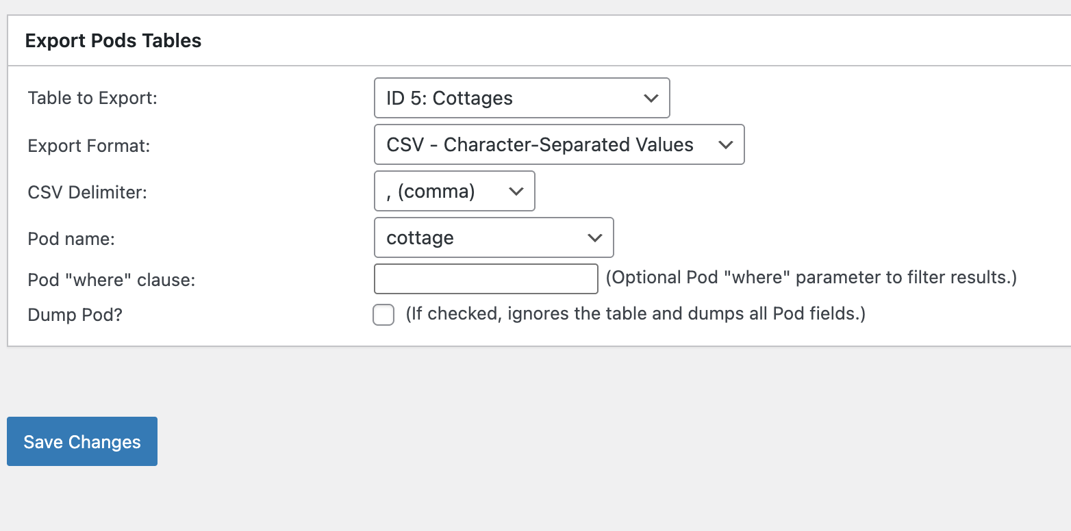 Export Pods Table #12
