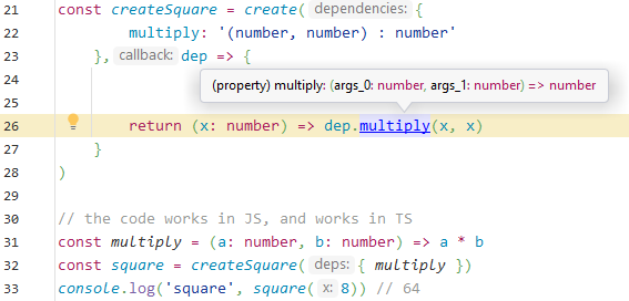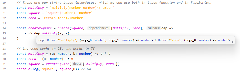 return a full-fledged TS interface. In this experiment #7, I try to generate a TS interface from an injected dependency, which is "just" inferring a TS type from a string like(number, number) => number